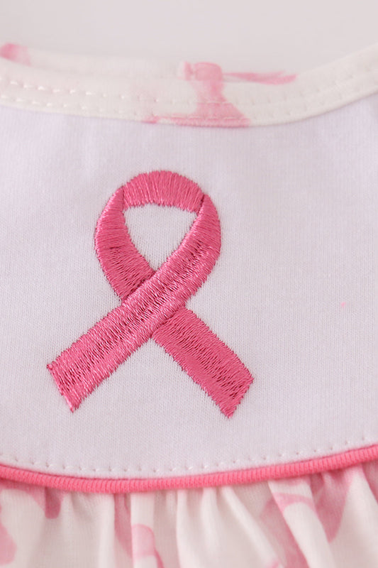 Pink bow tie embroidery ruffle dress
