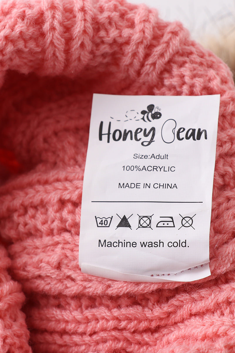 Bubblegum pink cable knit pom pom beanie hat baby toddler adult