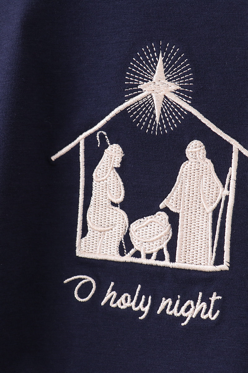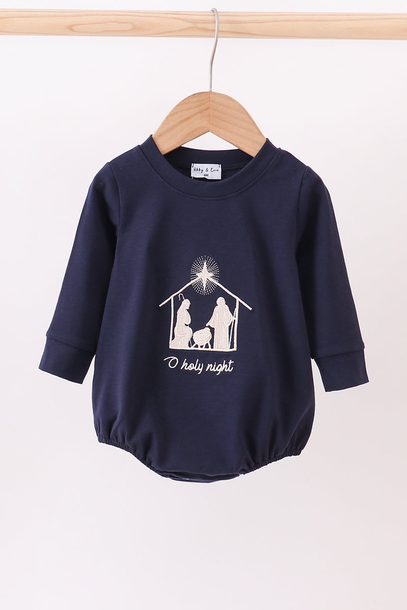 Navy nativity embroidery bubble