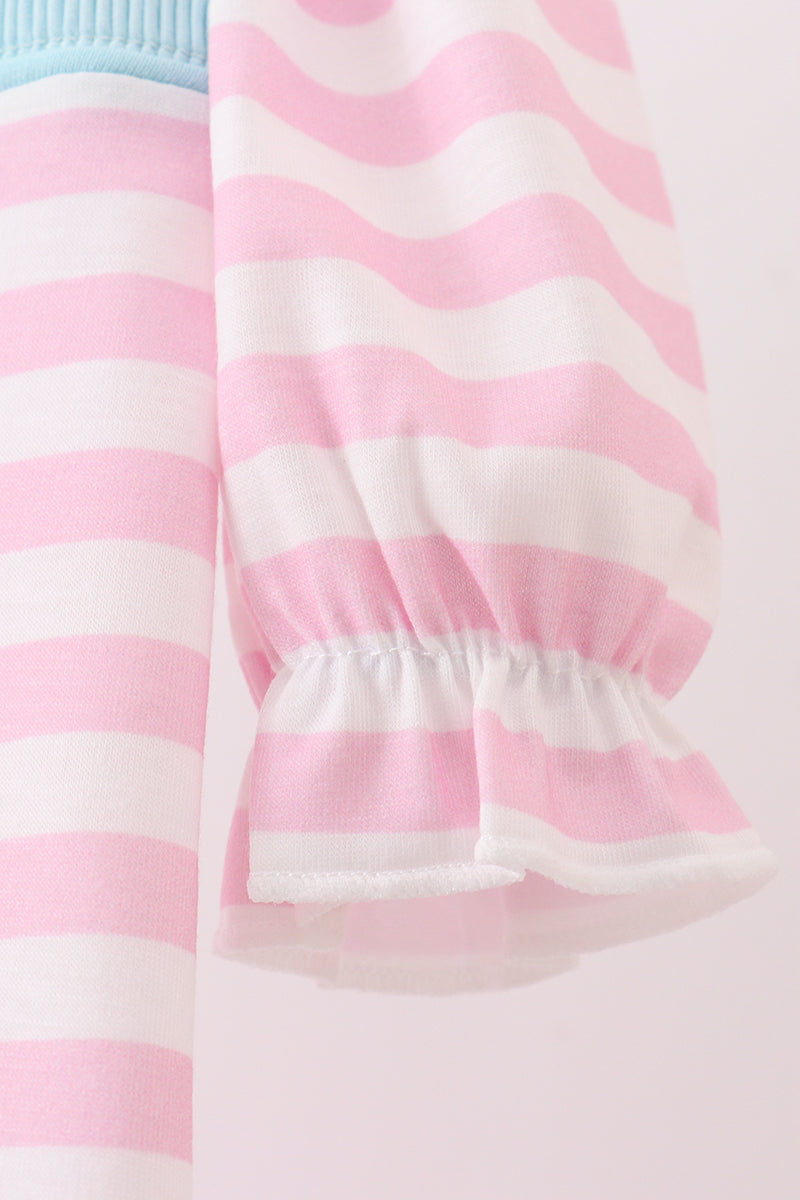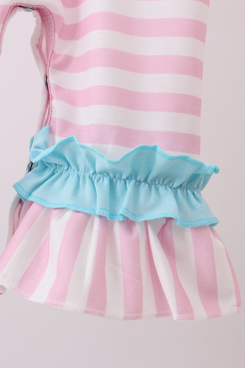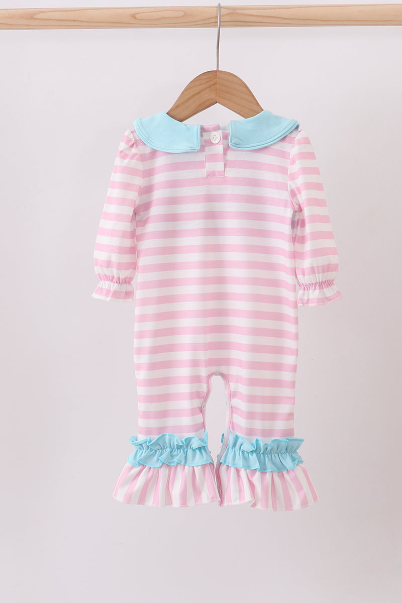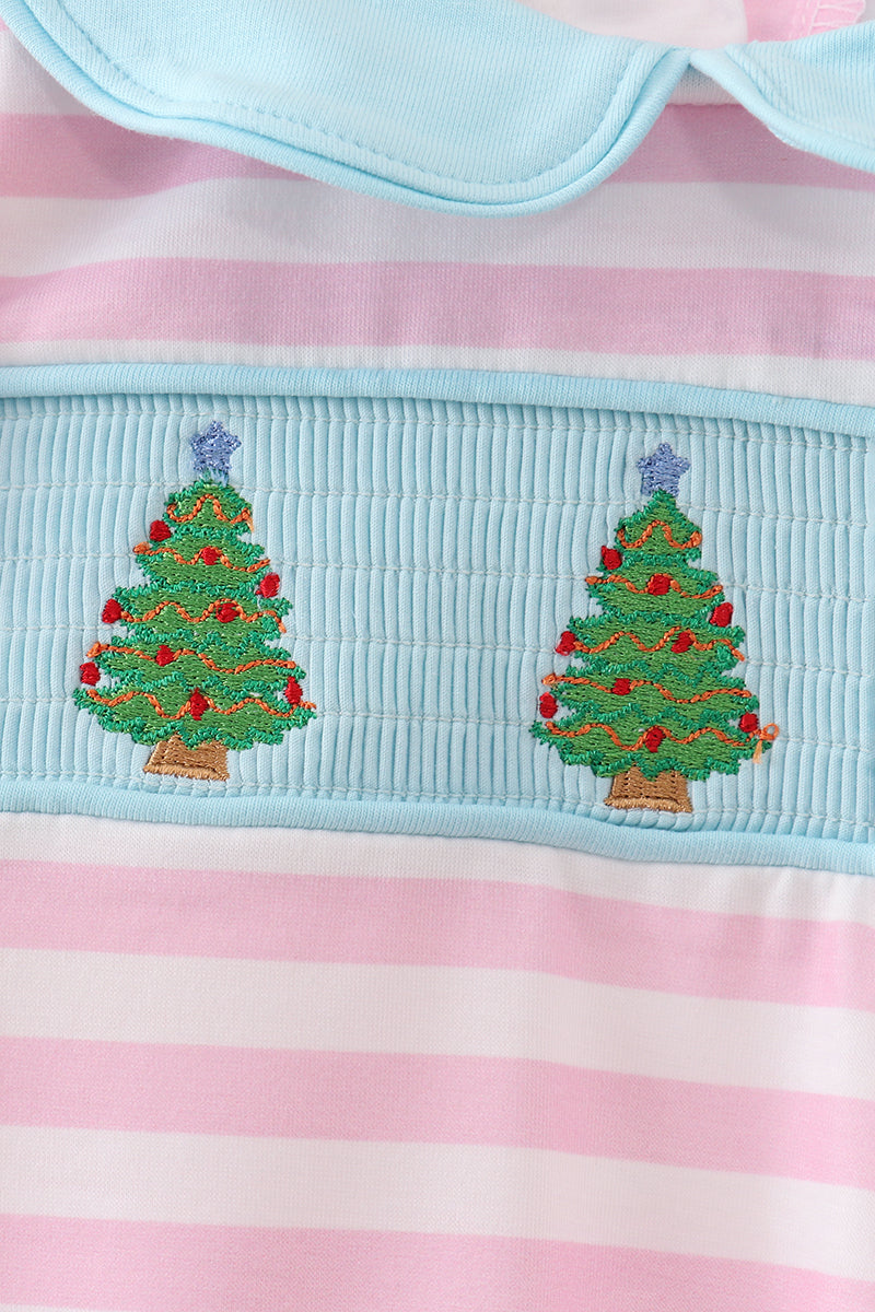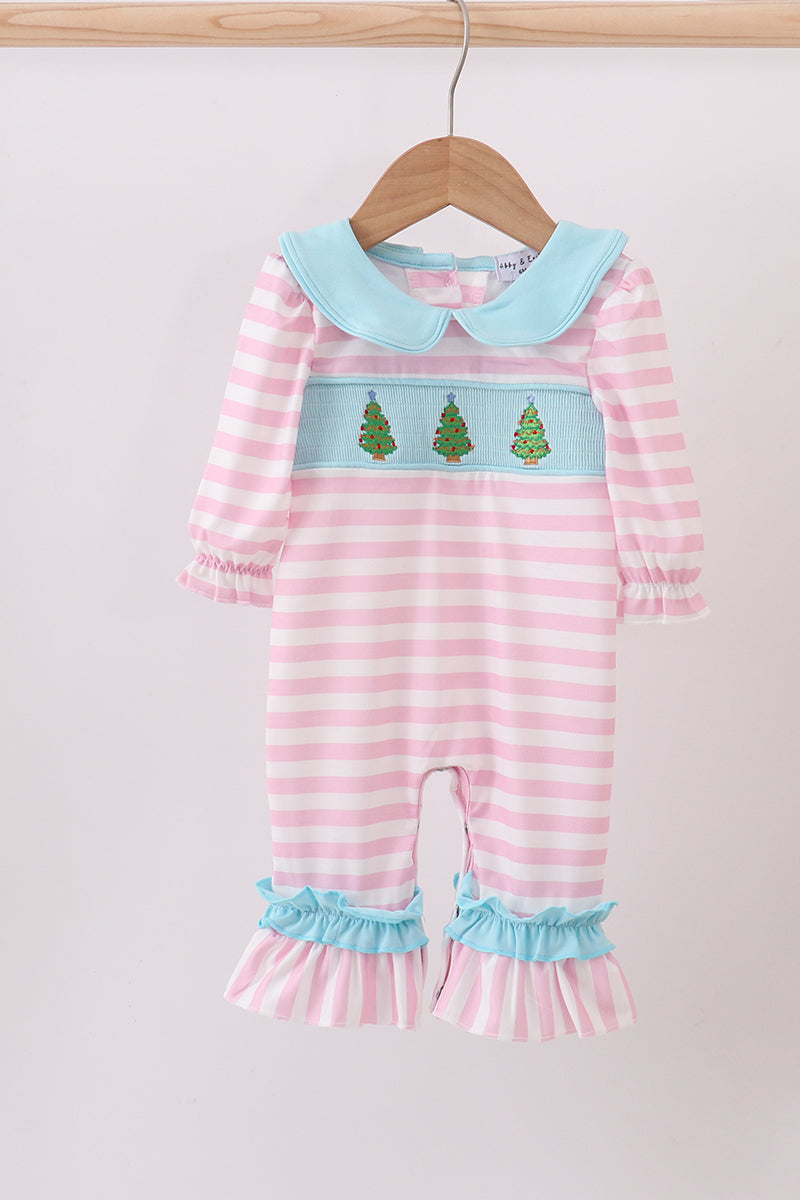 Dress your little one in festive cheer with this Pink Christmas Tree Smocked Stripe Ruffle Romper. Featuring charming smocked detailing and playful ruffles, it blends comfort with holiday fun. The soft pink stripes and cute Christmas tree accents make it perfect for holiday photos and cozy celebrations. Easy to wear and adorable to see, this romper is sure to bring smiles all season.