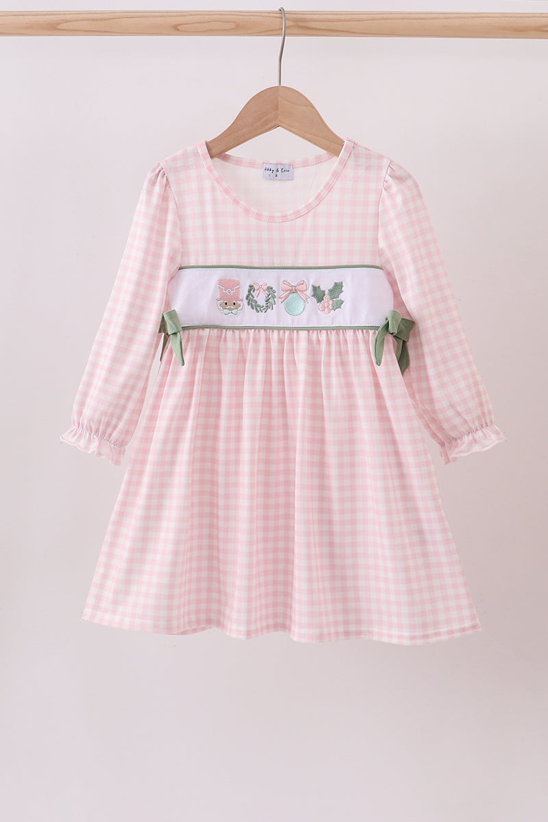 Step into festive fun with this Pink Nutcracker Embroidery Gingham Dress. The playful pink gingham pattern pairs charmingly with delicate nutcracker embroidery, adding a whimsical holiday touch. Lightweight and comfortable, it’s perfect for twirling at parties or storytime, making every moment feel like a joyful celebration.
